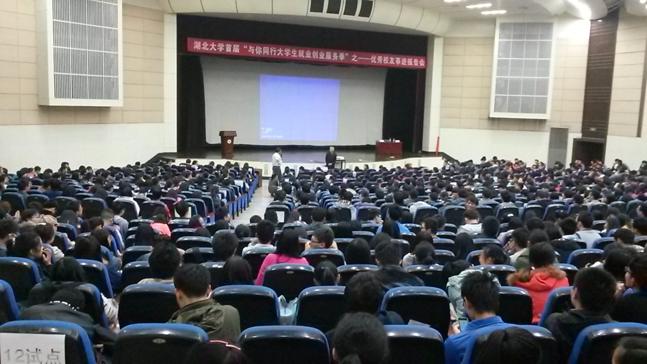 (通讯员:周聪聪 田雯)2014年11月5日晚7点,9428cn太阳集团古天乐首届“与你同行——大学生就业创业服务季”走进9428cn太阳集团,启动学院优秀校友事迹报告会首讲。生物系1995届校友、湖北省政协委员、北京大医传承生物科技有限公司董事长、湖北先秾坛生态农业——英山县神峰山庄总经理闻彬军做客小礼堂,为千余名生科院师生作了一场题为“我的创业之路”的精彩报告。报告会由院党委书记吴文华主持。校就业指导中心创业导师严蓉,神峰山庄相关负责人,院党委副书记许良发,副院长崔贞华,院团委书记杜彬、闻总当年班主任薛小桥老师参加了报告会。