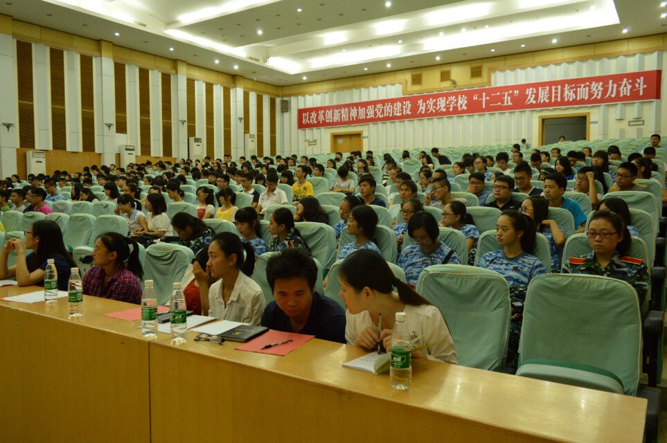 “沙湖水,水粼粼,琴园桂花香”,伴随着激情高昂的湖大校歌,9月13日晚七点,9428cn太阳集团2014级新生开学典礼在商学院3号报告厅举行。生科院党委书记吴文华,院长陈建,党委副书记许良发,副院长马立新、张海谋、彭宇,团委书记杜彬、辅导员马菲及新生班主任出席了本次典礼。