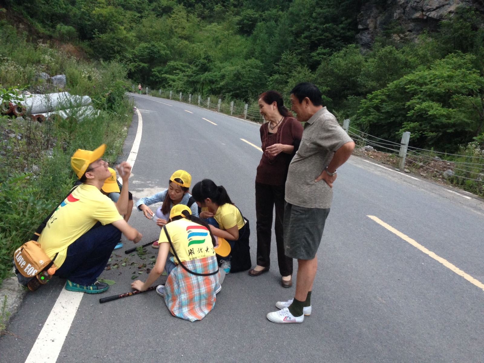 难忘一下车一种扑面而来的清心淳朴气息,放眼而望的深山老林,立马就让我们的舟车之乏消去了大半。在事先约好的小哥的带领下我们沿着狭窄的山谷街道来到他家的四层小楼,小桥流水人家就是他家的真实写照,但我们没有时间去细细品味,紧凑的收拾完后,简单的吃个饱饭,我们就不顾都有些许晕车的不适,开工选取合适的样地,在陡峭的山坡上仔细的搜索勘探,黄色的队服形成一处别样的旗帜,惹得大家驻足观看,而这一切都是为了在有限的时间里更好的完成任务得出更精确的数据。晚上大家在一起讨论今天的收获与总结,对明天和以后的行程安排出谋划策,不顾夜已经慢慢的变深,为的只是能合理的安排时间做好以后的工作记录和总结。冒着细雨和15度的低温穿行在机场各处深浅不一的草丛,选取合适的样方,齐心协力扫网布陷阱,在机场大厅穿梭,顶住工作人员的不配合,旅客的冷淡和不耐烦,请求他们帮忙填写问卷而一直讲到口干舌燥、嗓子嘶哑,只为得到真实的第一手资料。匆匆下山,穿行于小镇的街头人海中,从夕阳西斜到华灯初上,一次次的解释和一次次的请求,为的是尽早完成问卷的任务。第三天亦复如是。大家一起吃桶面,一起被拒绝,一起深夜讨论,一起冒雨调查,大家有过沮丧,有过失望,有过病痛,但从未有过放弃,因为我们是一个团队,我们不是一个人在战斗!