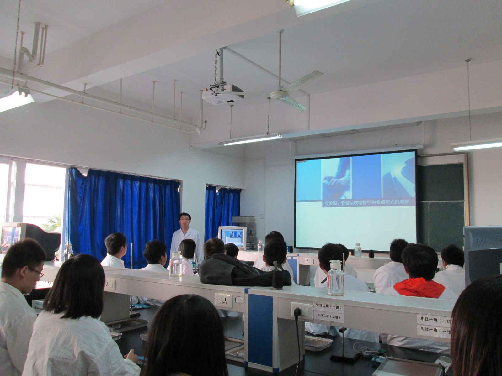 2013年10月15号,学校教学督导组一行7人到我院调研实践教学工作。督导组由教务处殷云飞副处长、视导员方光荣带队。张海谋副院长、国家实验中心主任杨艳燕教授、省级实验中心主任何玉池教授、各专业责任教授以及各教研室主任接待并参与了调研活动。督导组首先参观了学院实验教学中心,何玉池介绍了各主干实验室以及公共技术平台的建设和使用情况,各位专家对我院公共技术平台实行资源共享给予了高度评价。随后双方进行了座谈交流,张海谋介绍了我院实践教学情况,包括实验中心工作总结、实习实训工作总结以及我院在实践教学中存在的问题和建议。督导组对我院近年在实践教学工作中取得的成绩给予了充分肯定。同时也指出,按照国家级实验中心的标准,目前的建设水平还存在一定差距,希望生科院积极争取学校各项支持,加快中心的软件硬件建设,不断提高实践教学质量。最后督导组旁听了我院青年教师刘杰主讲的实验公开课,课后督导组充分肯定了刘杰老师的教学效果,并一起探讨了课堂教学方法和技巧。