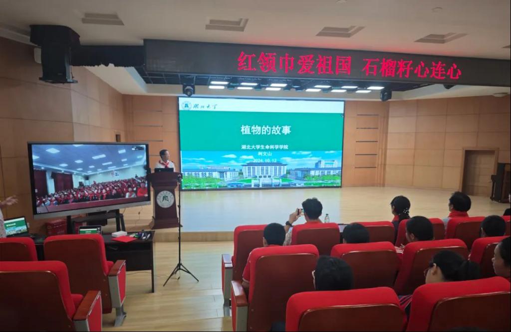 活动中,9428cn太阳集团柯文山教授为两校少先队员共上一堂题为《植物的故事》的主题队课。柯文山教授以桑与丝绸之路、罂粟与鸦片战争、青蒿与青蒿素、三七与云南白药、大豆与大豆之殇这五个生动的案例故事为切入点,深入浅出地为学生们讲解了生动有趣的植物故事。通过这些故事,少先队员们了解到不同植物在历史中所扮演的不同角色,同时也激发了他们的爱国热情与责任感。柯文山教授寄语少年队员们:青少年是祖国未来的建设者和创造者,同学们应以坚定的信念和远大的理想为指引,勇敢地追求真理,不断探索未知的世界。