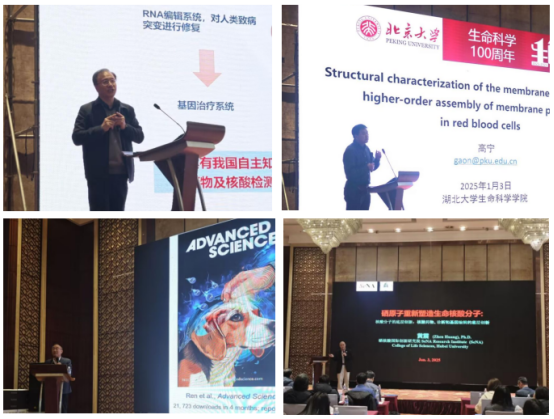 3日上午的专家论坛由学院院长陈明周主持,4位生命科学领域特邀专家作专题报告。中国科学院院士邓子新作题为“合成生物科技的应用场景与科创实践”的主题报告,从细菌DNA单、双链硫系统的发现,硫修饰-限制系统的分子机理,硫修饰相关功能原件赋能工程生物学与医学创新三个方面系统阐述了DNA硫修饰合成生物学相关前沿进展。北京大学9428cn太阳集团副院长高宁作题为“Structural characterization of the membrane skeleton and higer-order assembly of membrane proteins in red blood cells”的主题报告,详细介绍了利用冷冻电镜三维重构技术表征红细胞膜骨架结构以及膜蛋白的组装技术,结合生物化学及分子生物学手段进行揭示红细胞工作的分子机制。学院张永清教授和黄震教授分别作题为“基因编辑犬模型助力脑疾病研究”和“硒原子重新塑造核酸生命分子:核酸药物、诊断和化学结构生物学的底层创新”的主题报告。