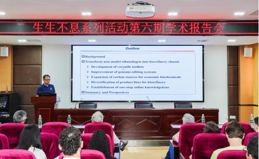 杨世辉教授围绕《Biodesign of Industrial Microorganism for Bioproducts》(面向生物产品的工业微生物生物设计)深入剖析了当前生物经济背景下构建高效细胞工厂的挑战并介绍了团队应对挑战的研究策略:将非模式乙醇生产菌改造为生物炼制底盘、开发多用途遗传操作工具包、改进基因组编辑系统以及拓展用于生产经济型生物化学品的碳源利用范围。