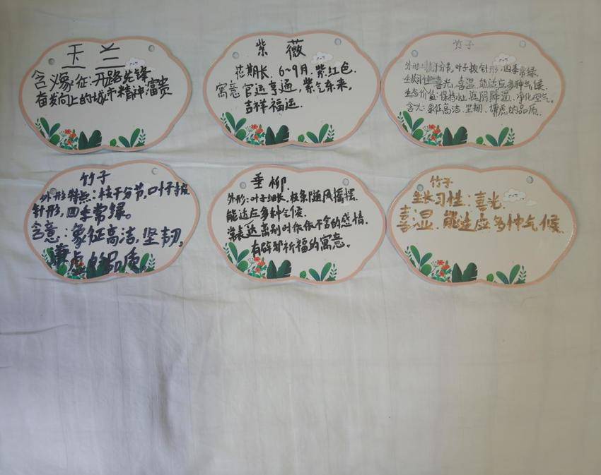 知识科普结束后,就是孩子们最期待的实践环节。孩子们分组合作,在老师指导下开始制作植物标识牌。从书写植物名称,到标注生长特点,每个步骤都凝聚着专注与思考。分发下去的空白挂牌,在他们天马行空的想象和巧手下,仿佛注入了鲜活生命力,真正成为承载着观察与思考的“植物身份证”。