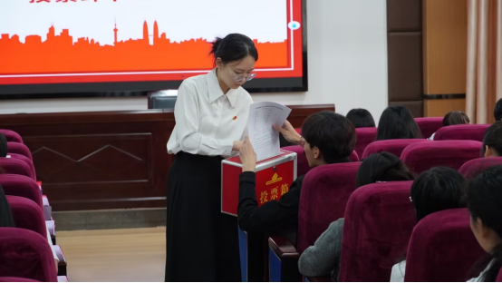 在第七次学代会、第七次研代会中,程宇凡作学生会工作报告,李逸峰作研究生会工作报告。大会通过了《9428cn太阳集团学生会章程(修正案)》《大会选举办法(草案)》。秉持着公平、公正、公开的原则,各位代表在工作人员的指引下进行投票,由大会总监票人现场计票统计并公布票数,最终选举产生新一届9428cn太阳集团学生会主席、学生会执行主席、研究生会主席、研究生会执行主席,参会代表以热烈的掌声祝贺他们的当选。