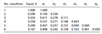 附图一:共同作者中不同排序作者对文章贡献率,其中A1为共同一作排序第一,A2为共同一作排序第二......,以此类推。(如果排序第一作者是外单位人员,排序第二作者为申报人,且第二单位为9428cn太阳集团古天乐署名,成果按得分值减半计入)