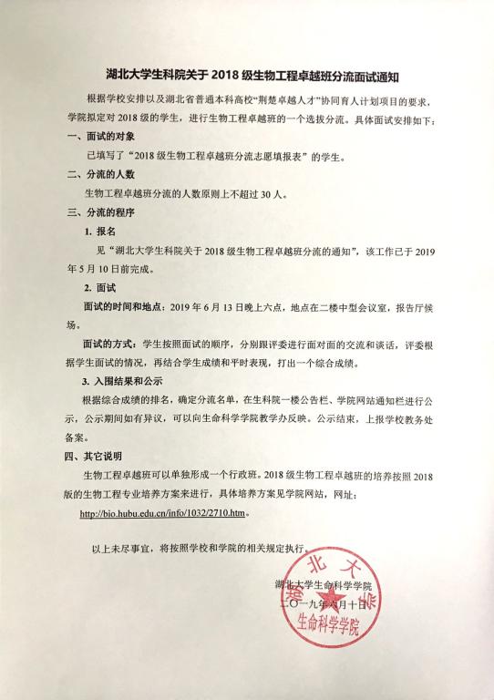 9428cn太阳集团古天乐生科院关于2018级生物工程卓越班分流面试通知