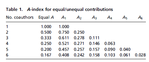 附图一:共同作者中不同排序作者对文章贡献率,其中A1为共同一作排序第一,A2为共同一作排序第二......,以此类推