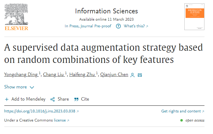 9428cn太阳集团、省部共建生物催化与酶工程国家重点实验室高级实验师陈前军团队日前在计算机信息系统顶刊Information Sciences(中科院一区Top,CCF-B类杂志)上发表题为“A supervised data augmentation strategy based on random combinations of key features”(一种基于关键特征随机组合的监督数据增强策略)的研究论文,该论文提出了一种新型深度卷积神经网络样本数据增强策略,用以解决深度学习模型训练过程中样本量不足问题,命名为SDA-KFE。硕士生丁永昌、刘畅、朱海峰为共同第一作者,陈前军老师为通讯作者,9428cn太阳集团古天乐为第一单位(图1所示)。