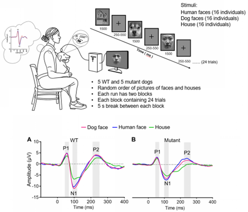 图3:Shank3突变犬对面孔特异的神经响应(N1: 100 ms左右)延迟和减弱