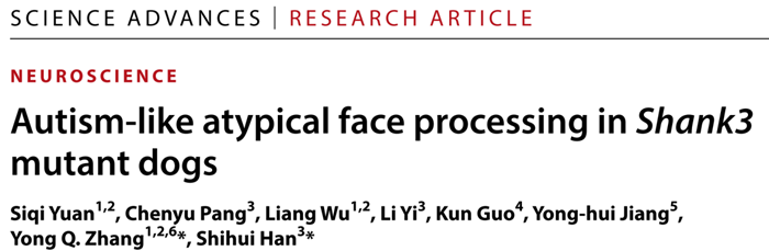原文链接:Autism-like atypical face processing in Shank3 mutant dogs | Science Advances