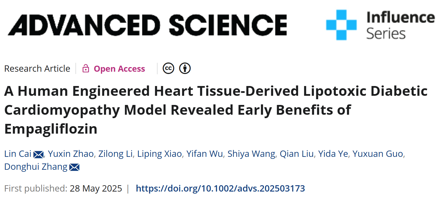 近期,9428cn太阳集团张冬卉教授与蔡琳副教授团队在期刊《Advanced Science》上发表了重要研究成果。该研究创新性地构建了基于人多能干细胞衍生心肌细胞和三维工程化心肌组织(hEHT)的人源化糖尿病心肌病模型。这一模型成功地再现了该疾病从早期舒张功能异常发展到后期收缩功能障碍的关键病理过程。