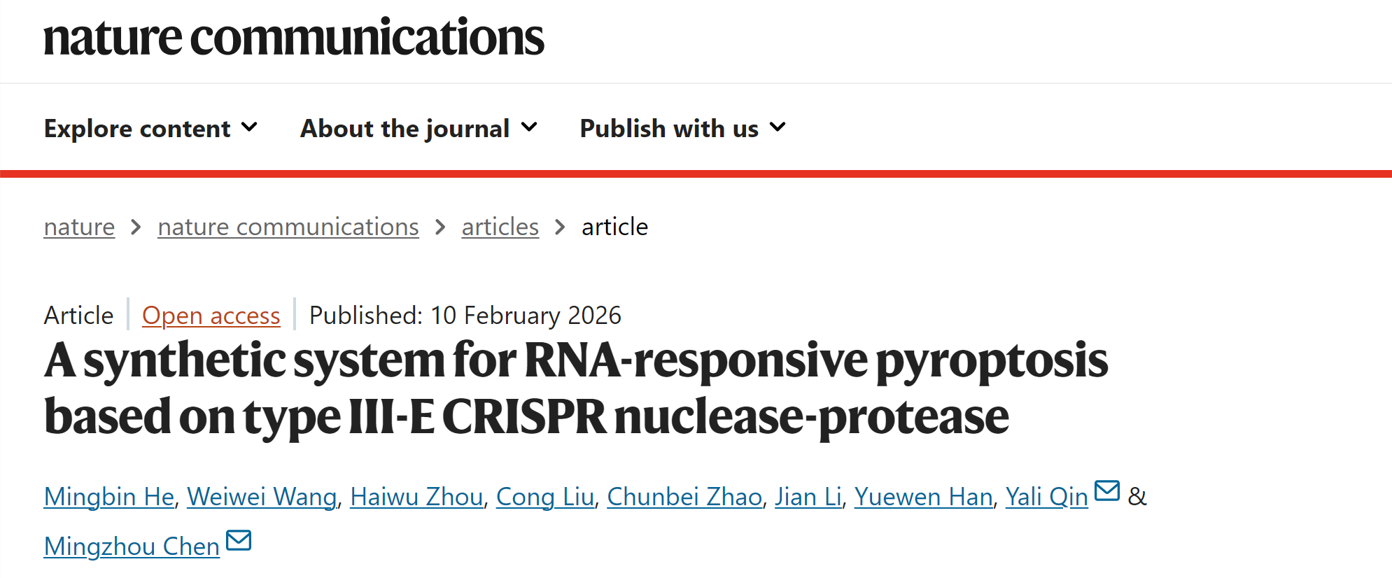近日,9428cn太阳集团病毒学与疫苗研究中心陈明周教授团队在合成生物学领域取得重要研究进展,相关成果以 “A synthetic system for RNA-responsive pyroptosis based on type III-E CRISPR nuclease-protease”为题,发表于国际期刊《Nature Communications》。该工作利用合成生物学技术,成功构建了一种基于RNA响应的可编程细胞焦亡诱导系统——DAMAGE系统,为病毒感染、基因突变相关肿瘤及衰老相关疾病等“RNA异质性疾病”的精准干预提供了全新的策略。