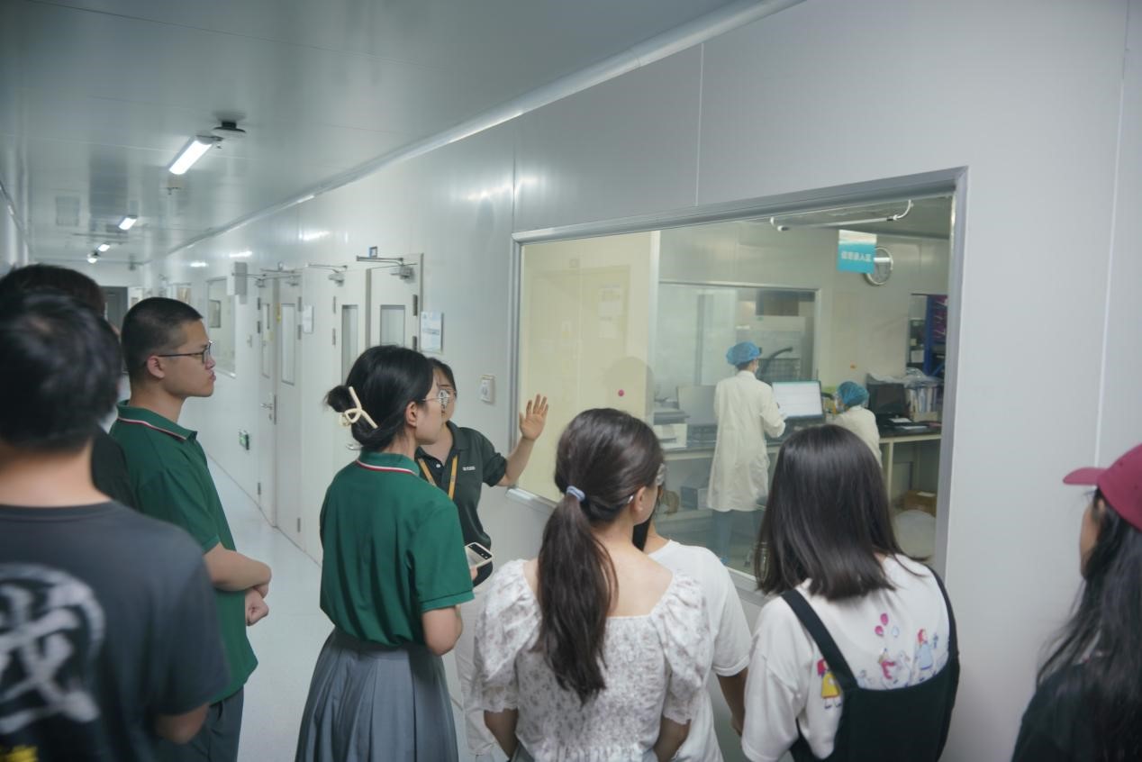 随后,在陈翠老师带领下,同学们参观了公司实验室分区总体布局。对DNA提取实验室、电泳室、DNA打断室和自动化实验室等逐一参观后,陈翠老师对公司的定制化产品和自动化设备做了详细介绍。“定制化产品包括DNA定制化、RNA定制化、单细胞定制化和免疫组库等,专注于跟踪、开发高通量测序领域建库相关的新技术和新方法。而公司的自动化设备已形成了一条提取、建库、上机前处理等全流程半自动化产线。”此外,对于DNA样品打断仪器的介绍,陈翠老师提到了聚焦超声波打断法、发散型超声波打断法和物理方法拉断DNA等并对相关仪器的技术特点和主要应用作了简要介绍。