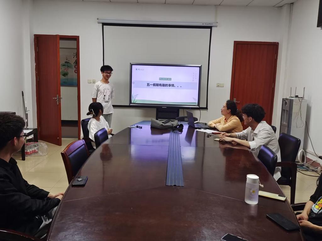 首先同学们分享了自己五一假期有趣的事情。彭圣浩同学千里走单骑,来了一场走马观花,说走就走的武汉旅行,观赏到了美丽的长江夜景,气势磅礴的黄鹤楼,在户部巷体验了一场舌尖旅行。邵艺飞同学分享了自己与伙伴去潜江游玩,品尝到了当地的特色小吃小龙虾,辣到味觉足够过瘾。潘子龙同学回家帮家人们采摘棉花,享受劳动带来的欢乐。还有些同学假期宅在宿舍,通过学习来充实自己,或是玩玩游戏,放松心情。大家五一假期生活都过得十分充足,丰富多彩。