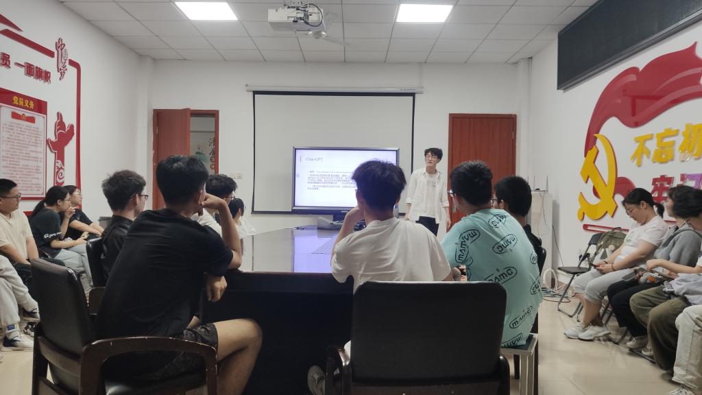 然后班长邢有钊同学进行了AI技术交流,向大家科普一些人工智能的相关知识。Chat GPT等新型人工智能的出现掀起了一阵讨论热潮,同学们也大都对该类技术有着浓厚兴趣。邢有钊同学简单为同学们介绍了人工智能的发展历史,同时展示了对话型人工智能的实际操作方法,使同学们对人工智能有了更进一步的了解。当然邢有钊同学也指出并强调,同学们要正视人工智能,恰当合理地使用这项工具,但不要过度依赖于此类工具,仍然要有自己的创新思维,这是人类相较于AI的最重要的优势。