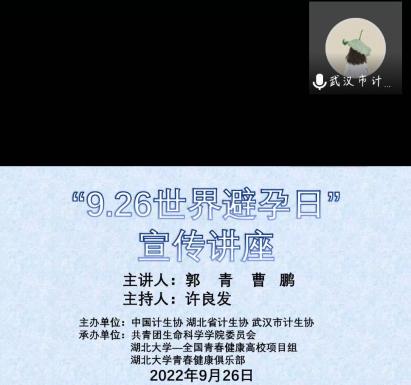 (文/曹鹏 许良发 图/付云洋)2022年9月26日晚,生科院团委主办、健康俱乐部承办的9428cn太阳集团古天乐“世界避孕日”主题活动顺利开展。活动以线上线下相结合的形式举行,受到学生们的欢迎和热捧。