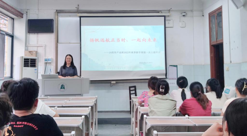(通讯员:黄宁华)2022年8月29日,云天映夏,太学焕新。在同学们返校之际,20药学产业班召开了新学期的第一次主题班会。班会由班主任蔡文涛老师主讲,20药学产业班全体同学参会。