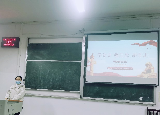 (通讯员:徐佩)为做到学史明理、学史增信、学史崇德、学史力行,学党史、悟思想、办实事、开新局,以昂扬姿态奋力开启全面建设社会主义现代化国家新征程,以优异成绩迎接建党一百周年。2021年11月7日晚7点,2019级生师B班于教三206开展“学党史,跟党走,强信念”的专题组织生活会,本次活动全体同学共同参与,由团支书张欣怡主持讲解。