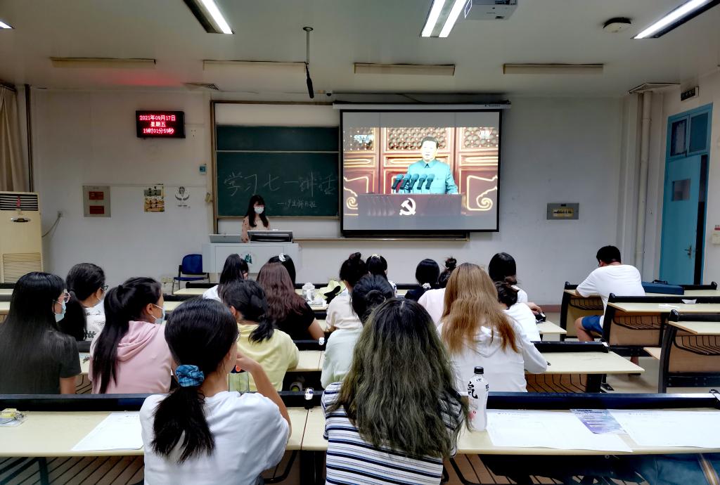 (通讯员:徐佩)为同心共筑中国梦,不忘初心跟党走,始终坚持中国共产党的领导,强化理论武装,提高政治站位,增强忧患意识。2021年9月17日晚7点,2019级生师B班于教四210开展学习“七一讲话”团日活动。本次活动全体同学共同参与,由组织委员廖曼妮、班长闻淑琪主持讲解。