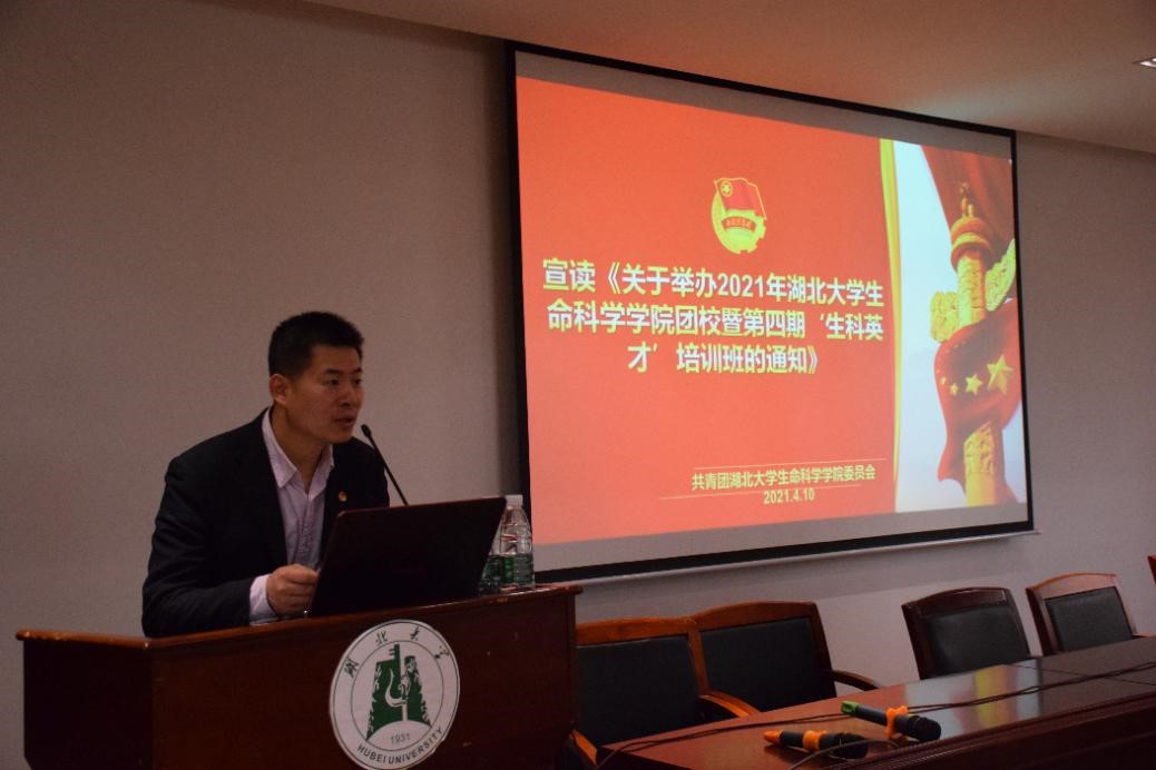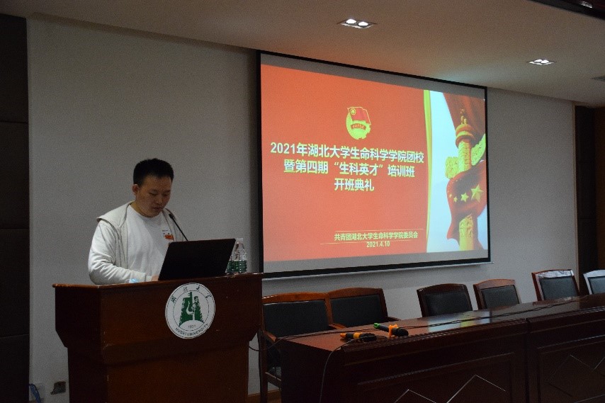 许良发老师宣读《关于举办2021年9428cn太阳集团团校暨第四期“生科英才”培训班的通知》,并强调要重视团校课程的学习,认真听讲,记好笔记,保证学习的效率。