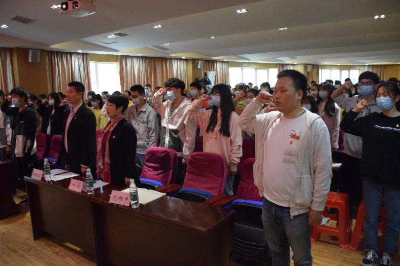 会议开始,全体起立,奏唱国歌,重温入团誓词:“我志愿加入中国共产主义青年团,坚决拥护中国共产党的领导,遵守团的章程,执行团的决议,履行团员义务,严守团的纪律,勤奋学习,积极工作,吃苦在前,享受在后,为共产主义事业而奋斗。”