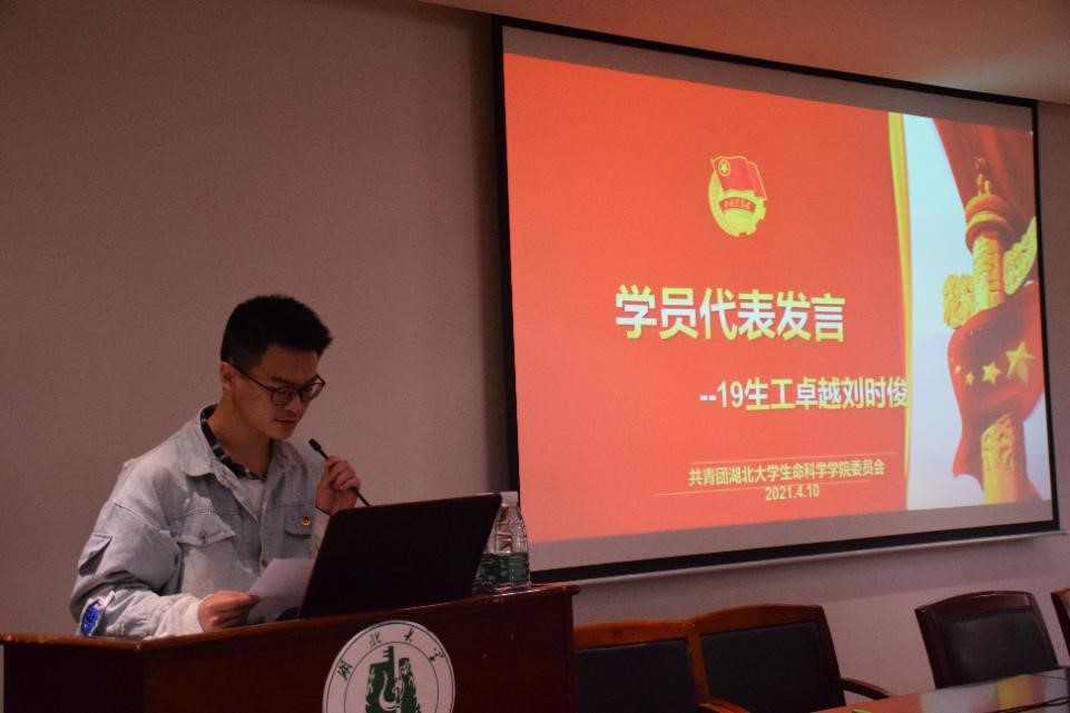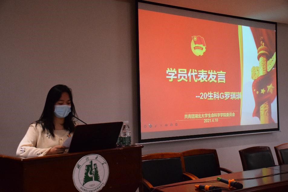 学员代表19级生工卓越班刘时俊和20级生物科学G班罗琪琪先后发言,表达自己对能加入团校学习的自豪与思想觉悟,从思想上、行动上践行团员标准,履行团员义务,把自己培养成符合时代要求的全方位多向发展高素质人才。