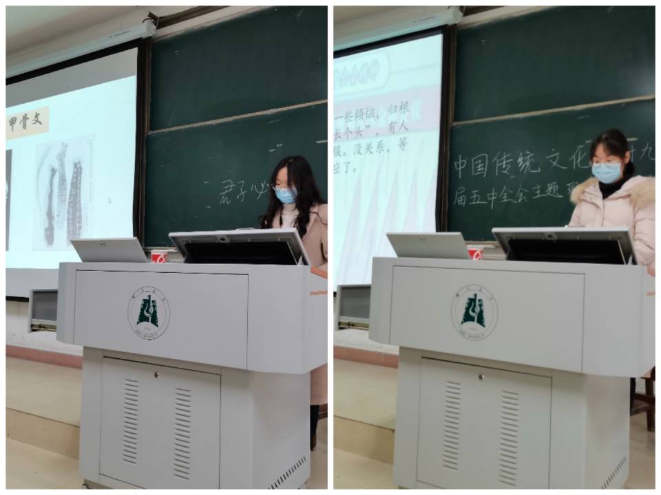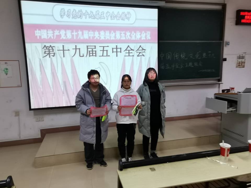 活动开展前期,为响应生命科学院提出的宣扬中国传统文化的主题,我班陈嘉欣同学介绍了中国书法源远流长的璀璨历史,一些优秀的书法作品及自身学习书法的经历和感悟,同学们自发鼓掌。接下来由班级组织委员孟祥瑜同学介绍近期热点-十九大五中全会,她从本次会议讨论的重点事项,社会现象及所弘扬的伟大精神等出发,介绍新时代大学生面对新的机遇和挑战所应持有的态度和做法。