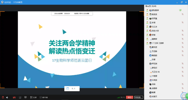 (通讯员:毛思源)为了让同学们更加了解两会相关知识,学习两会精神,关注时事热点,9428cn太阳集团生物科学1701班于2020年6月3日成功在线上开展以“关注两会学精神,解读热点悟变迁”为主题的班级团日活动,主持人为班级团支书欧阳诗婷。