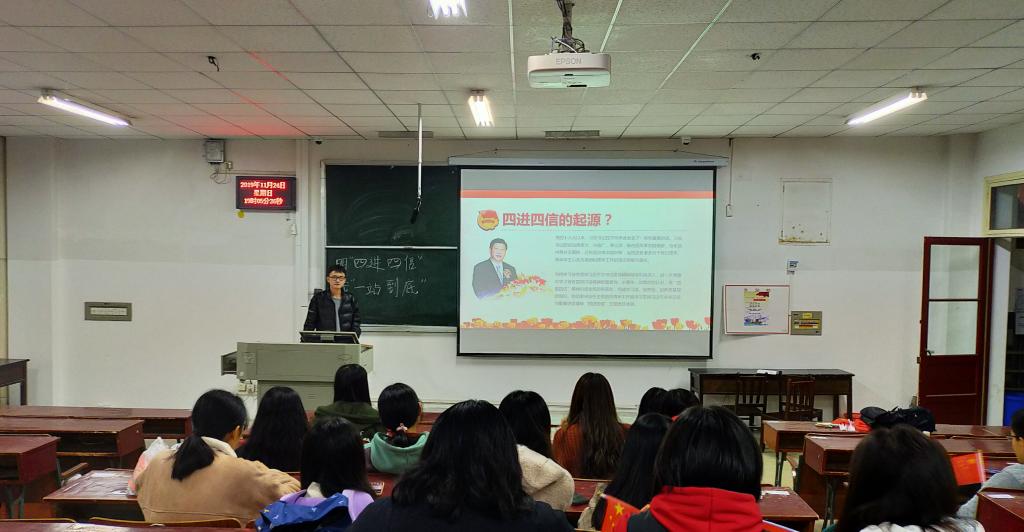 (通讯员:顾新月)11月24日晚七点,药学1802班全体同学教三-402开展了一场以“明四进四信,我一站到底”为主题的团日活动。本次活动由团支书朱思豹主持。