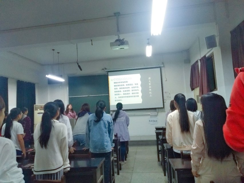 (通讯员:蒋雨希)1020日晚6点,2018级生物科学师范班全体同学在教3603教室开展了以“爱国爱校教育”为题的团日活动。活动主持人是团支书朱齐燕。