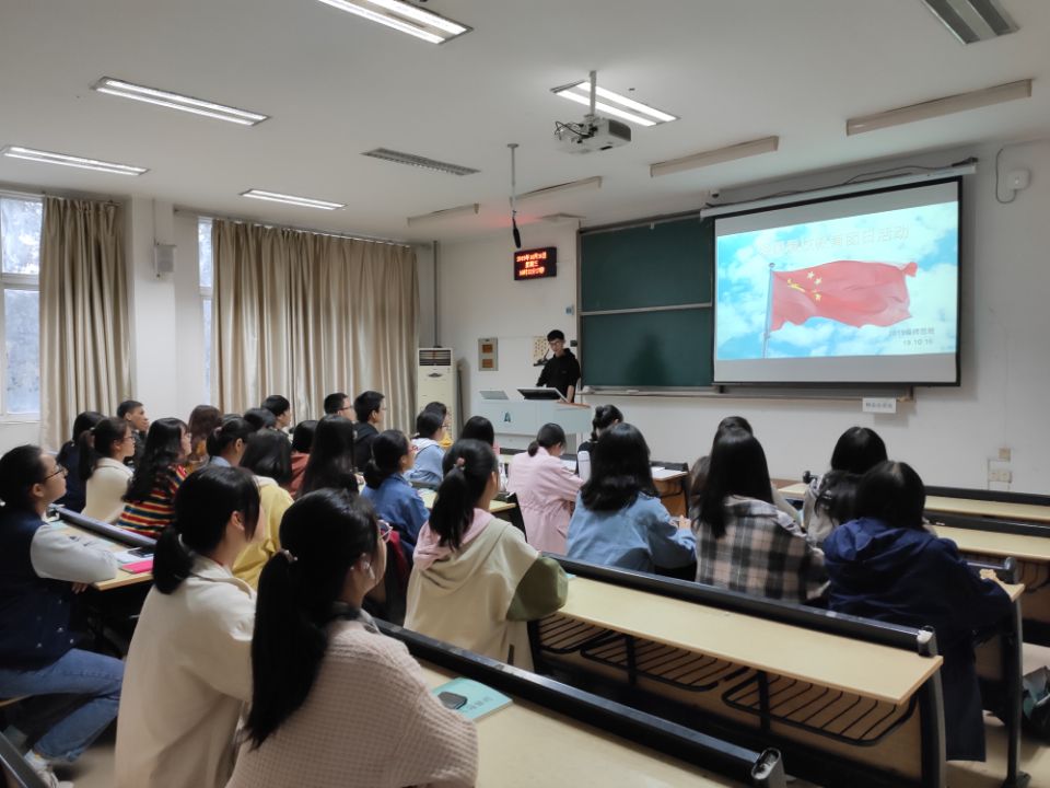 活动开始前,师范班的同学们在团支书的组织下先后领取了军事理论课教材。随后,团日活动正式开始,开场视频《中国历史年表》用几分钟回顾了中国发展史,此外还重温了国庆的阅兵仪式片段。当国歌响起时,全班肃然起敬,起立观看。观看结束后,团支书向大家推荐了一些爱国主题的影片。最后以同学发言表达对祖国的祝福。除了团支书的爱国宣讲,还有对大学生活的感悟分享。全班首先就9428cn太阳集团古天乐入学宣誓进行全体宣誓,大家双手握拳,宣誓时声音非常洪亮。接着,大家一起跟唱了9428cn太阳集团古天乐校歌,更有同学积极分享初入大学的感想。