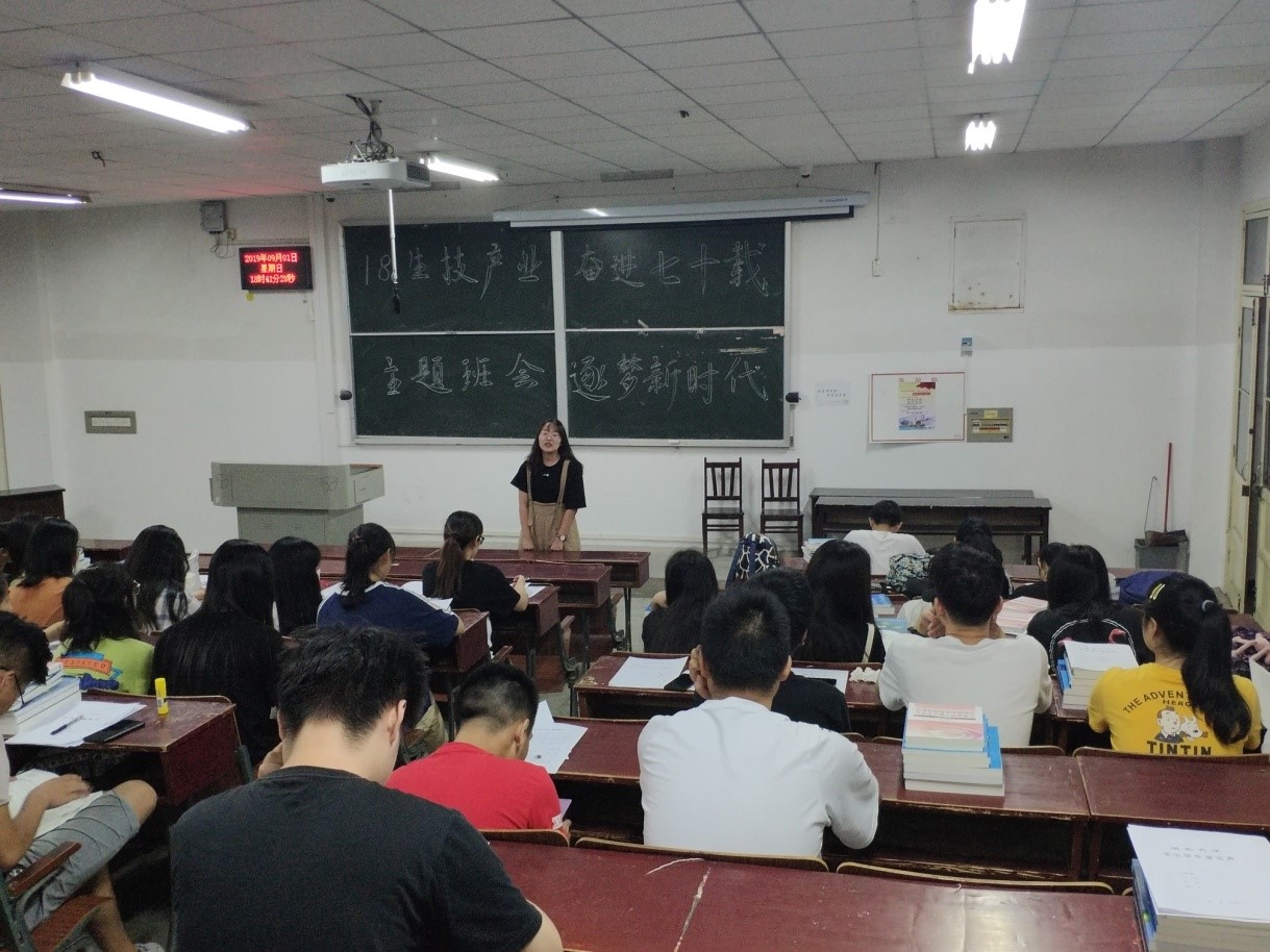 “奋进七十载 逐梦新时代”是主题,更是一个口号,在祖国70岁生日之际,18生技产业班会继续以此为主题开展相关活动。(编辑:贺文丽 摄影:徐龙辉)