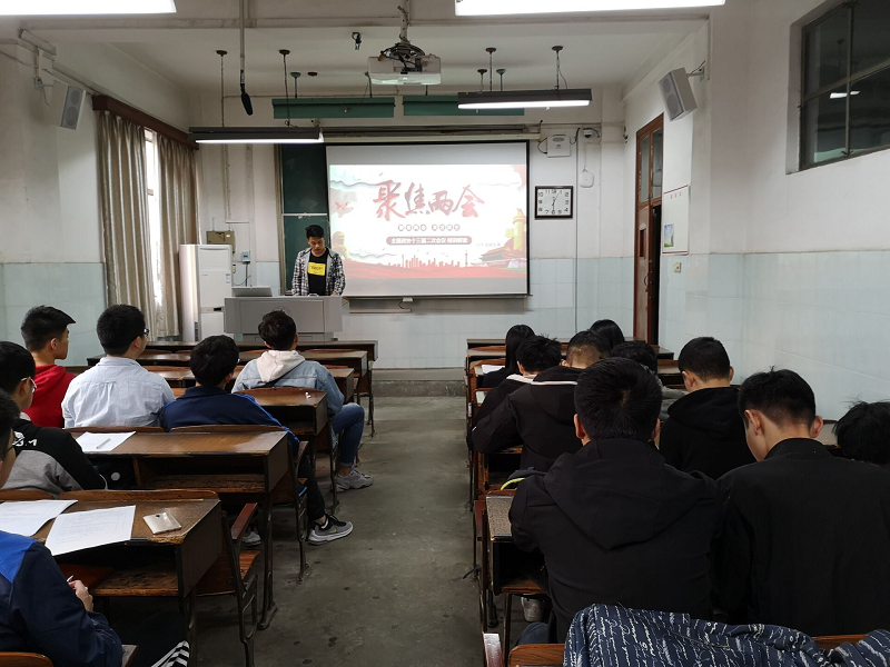 活动开始,团支书熊世颉首先就两会的含义及情况进行了基本概述,随后播放了一段关于部分人大代表提议内容的视频。从中我们了解到,近3000名十三届全国人大代表在为各行各业的人民发声,正如他们所说,人大代表,代表的就是国家与老百姓之间的绿色通道,解决问题就是他们的职责所在。紧接着,团支书就两会的看点进行了归纳整理,带我们回顾了两会的任务及工作。对两会进行深化了解之后,团支书还向我们重点介绍了两会提出的需要解决的十大民生问题,引人深思。之后我们就两会内容进行了思考及分组讨论,总结得出,作为当代大学生的我们,在实际学习和科研工作中应认真贯彻落实两会精神,进一步增强自身的使命意识和责任意识,把思想和行动统一到两会精神上来。