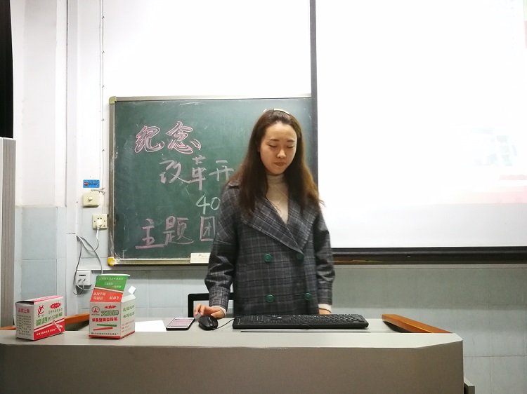 活动初始,班级各个团员们一齐观看庆祝改革开放40周年纪录片《历史告诉未来》,纪录片中所展现出来的改革开放以来人民生活和国家建设让同学们深切感受到改革开放重要历史意义。随后,各小组同学展示提前所做的准备,包括手抄报,海报,主题演讲等多种形式的成果汇报,同大家一起讨论在这改革开放的四十年内我国从局部到整体,从农村到城市,从内治到外交究竟发生了怎样翻天覆地的变化,更有同学以亲身经历切入生动地讲述了家乡周边从泥道石墙变成高楼铁路的显著变化。
