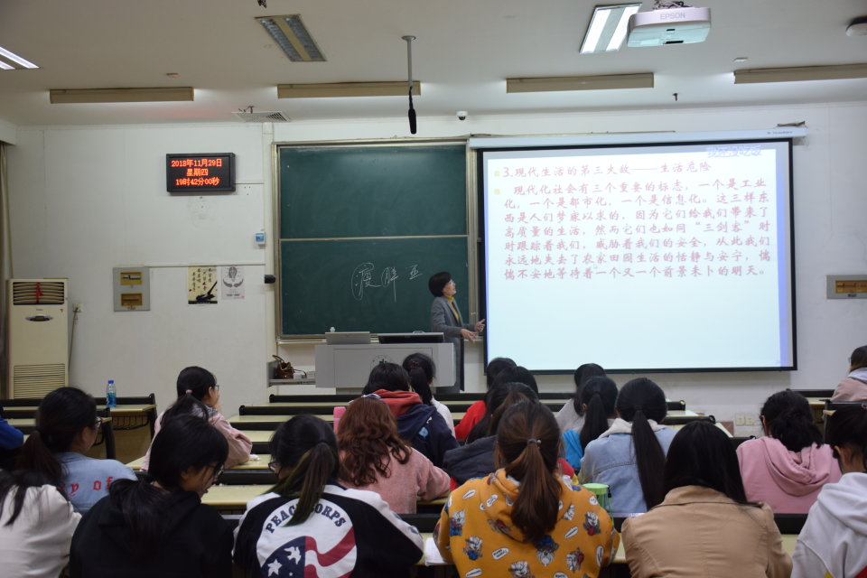 1129号,由健康俱乐部举办的健康大讲堂在教四顺利开展。此次讲堂面向全校同学,并且特别邀请了体育学院教授代方梅来为同学们讲上了关于健康的重要一课。