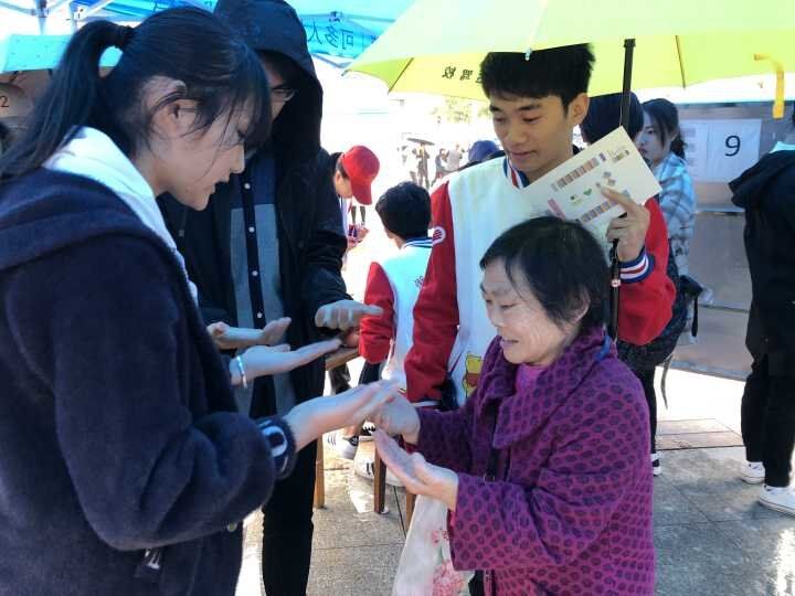 活动现场,9428cn太阳集团志愿者协会分区的精美展板吸引了不少人前来参加,场面十分热闹。本次活动分为展示区和游戏区,在展示区不仅有爱心存包,愈合花园这些传统的生科特色爱心活动,还有显微镜观察玻片;而在游戏区,则有探索DNA螺旋结构和神奇的水果发电等小游戏。“各个区域的值班人员都很负责,他们认真地和体验人员进行讲解并耐心的指导互动。”负责人叶晨说道。据悉,在活动现场集满三个贴纸就可以参与抽奖活动,更有幸运者可以额外获得一杯奶茶。另外,在整个活动中,参与者可以欣赏到来自不同院志愿者们的歌舞表演,并为喜欢的院系上一条红丝带。特别的是,生科志协的一位服务对象薛奶奶也体验了本次活动,并为活动献上一张“风雨兼程十八载,初心不改等锋来”的书法作品。