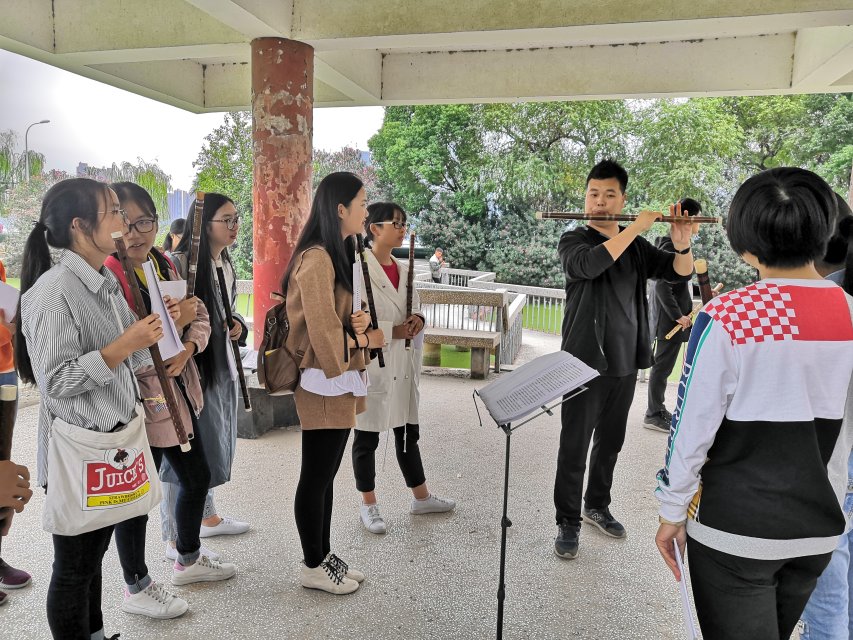 本次活动在徐勉老师及其弟子们的精彩表演后正式拉开了序幕。活动中,徐勉老师先为初次接触笛箫的大一新生们示范了吹笛箫的正确姿势并为他们讲解发声的方法,在场的同学们也很仔细地观看倾听。教学完毕,徐勉老师鼓励他们每一个人都去进行一番尝试并耐心地纠正他们的错误,还提出一些专业的指导建议。现场学习交流氛围浓烈异常,一致的动作和青涩却又响亮的笛箫声让徐勉老师不禁夸赞他们的学习能力之强。值得一提的是,此次活动也吸引了一大批社会人士前来交流学习。他们演奏出的悠扬笛声和低沉箫音相互交织,博得在场人士的阵阵欢呼。