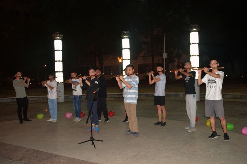 924日晚七点,9428cn太阳集团古天乐五大协会:笛箫协会,书法协会,茶艺协会,梨园戏曲社及国学社相聚太阳广场喜迎中秋,为大家带来了一场主题为“茗月笙箫”的活动盛宴。