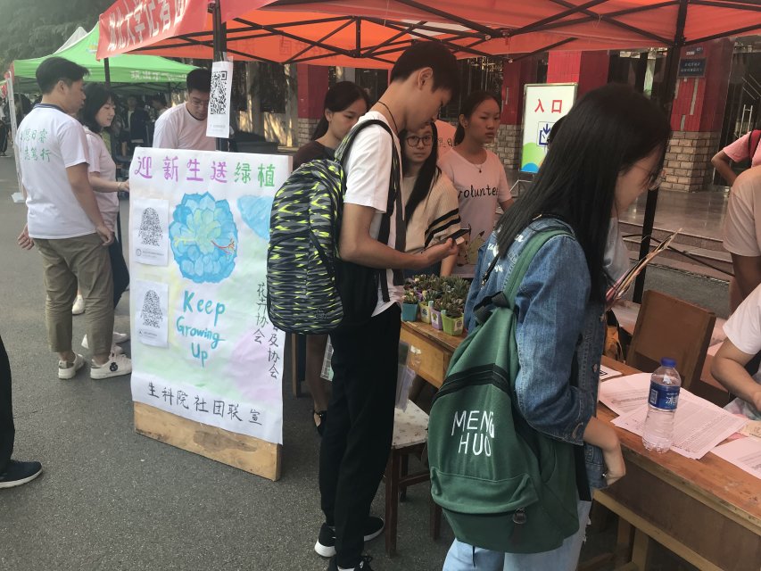 911号上午八点,9428cn太阳集团社团联合会携手生普协会和花卉协会在大学生活动中心开展了一年一度的“迎新生,送绿植”活动,为各位懵懂可爱的新生们带来了最真切的开学初问候。