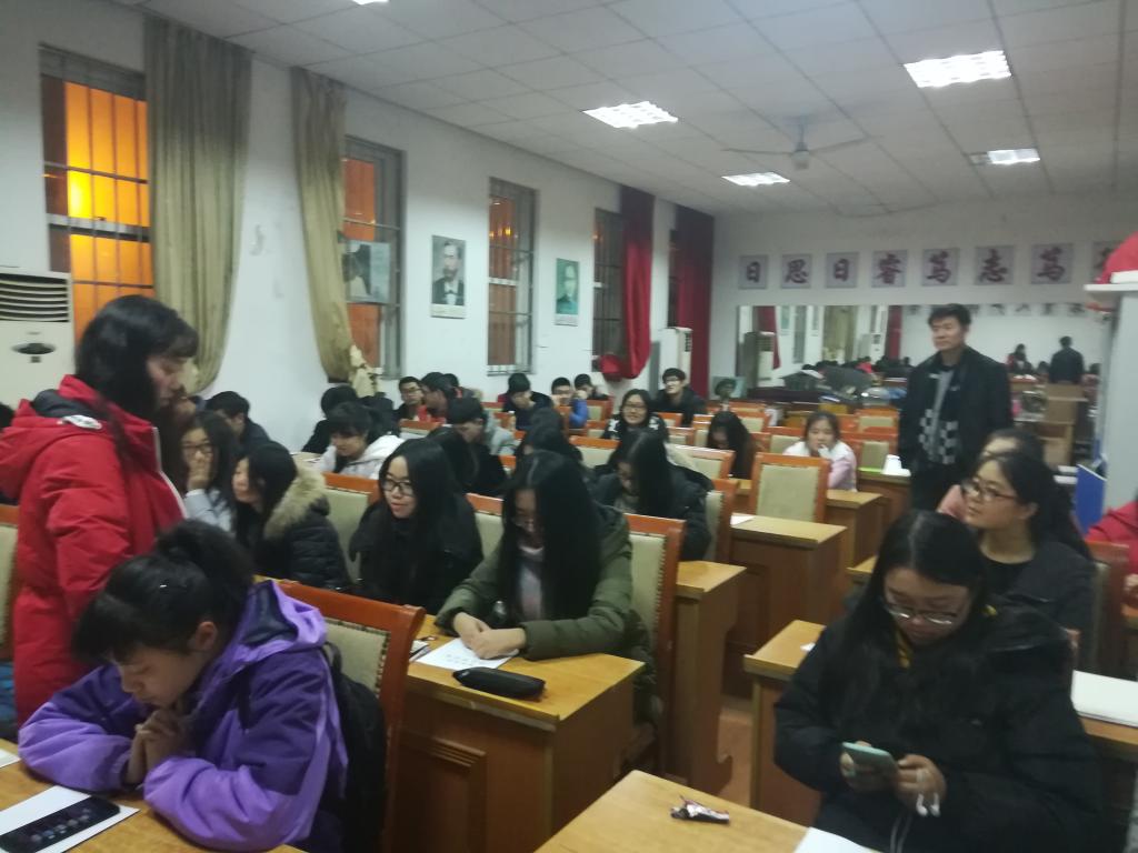 201811日元旦之夜,17级生物科学A班的全体同学利用返校点名之际召开“话元旦 迎新年”主题班会。