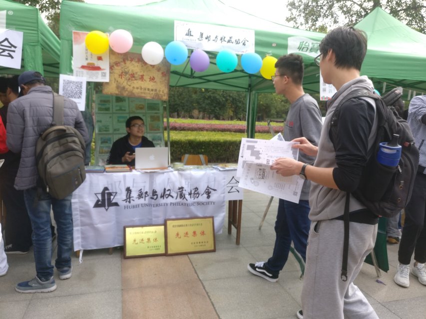 20171025日星期三上午八时,9428cn太阳集团古天乐迎来了新学期的社团招新活动。集邮与收藏协会在求索广场进行了摆点招新。