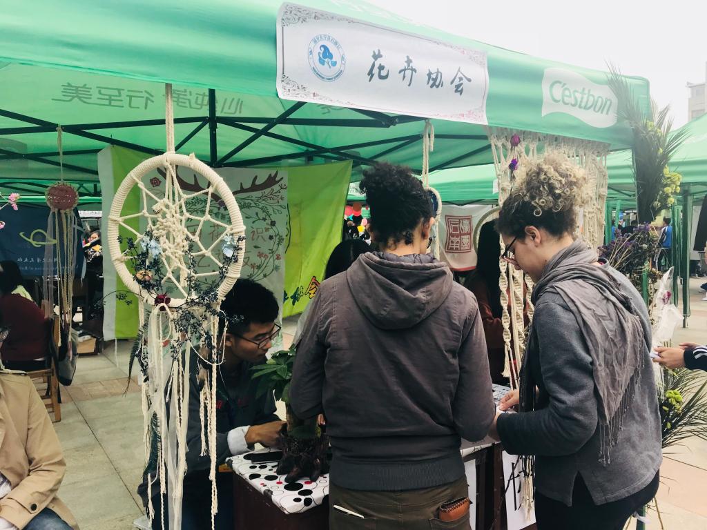 上午九时,百团招新的战鼓正式擂响,花卉协会的会员们提前用盆栽、花环将整个摆点清新和文艺的氛围渲染得恰到好处。在会长王诗语和社联人员的热情宣传下,花卉协会的人气不断攀升,来往的同学不约而同簇拥在花卉协会摆点处,负责花卉协会的招新人员在人群中积极发放宣传单,耐心地为同学解答疑惑并讲解部门的活动安排。许多同学在了解花卉协会之后纷纷报名加入成为花卉协会成为花卉协会的会员。值得一提的是,新会员中有三位为外国友人,其中两人来自巴西,一人来自印度尼西亚,她们的加入为花卉协会注入了异国风采。暖阳下,也有散步的老奶奶拉着孙女来欣赏花卉协会的花帘,夸赞花卉协会的创意。
