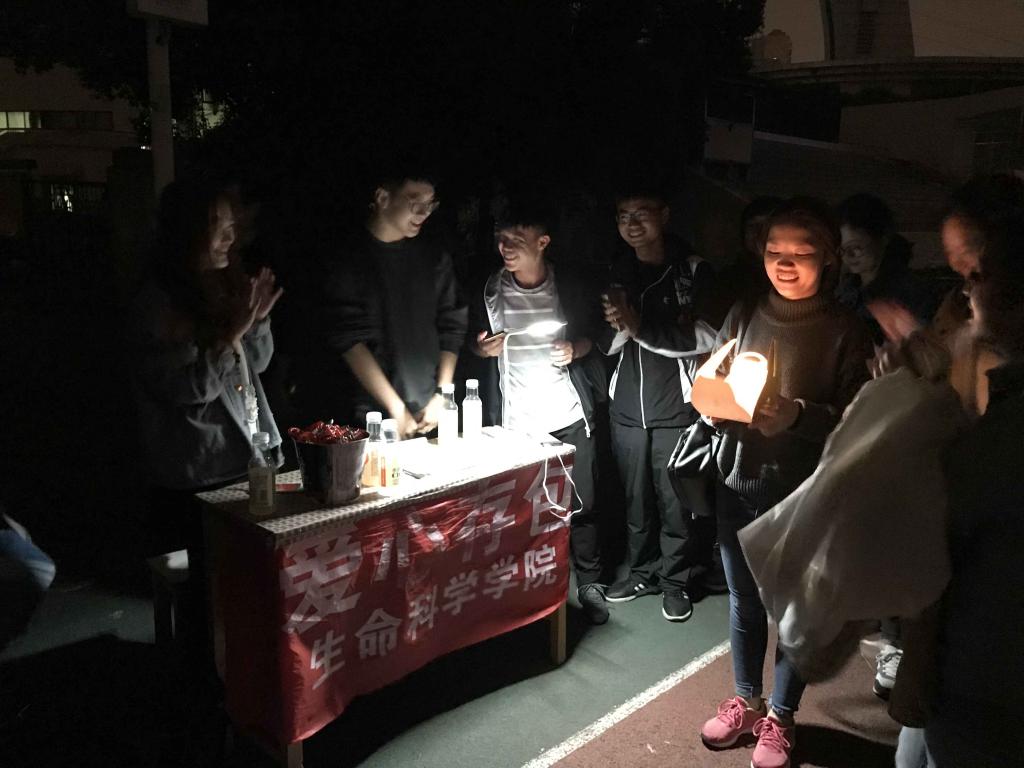 这天晚上十点,9428cn太阳集团古天乐二号体育场还有很多人在锻炼身体,而生科院志愿者协会设置的爱心存包处却玩出了新花样——存生日蛋糕。
