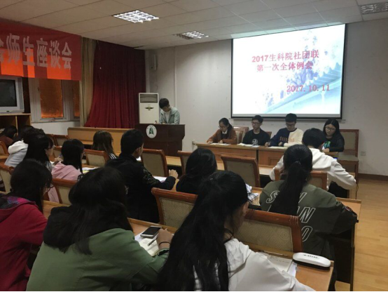 911日下午六点十分,生科院社团联合会在生化大楼二号报告厅召开了第一次例会。