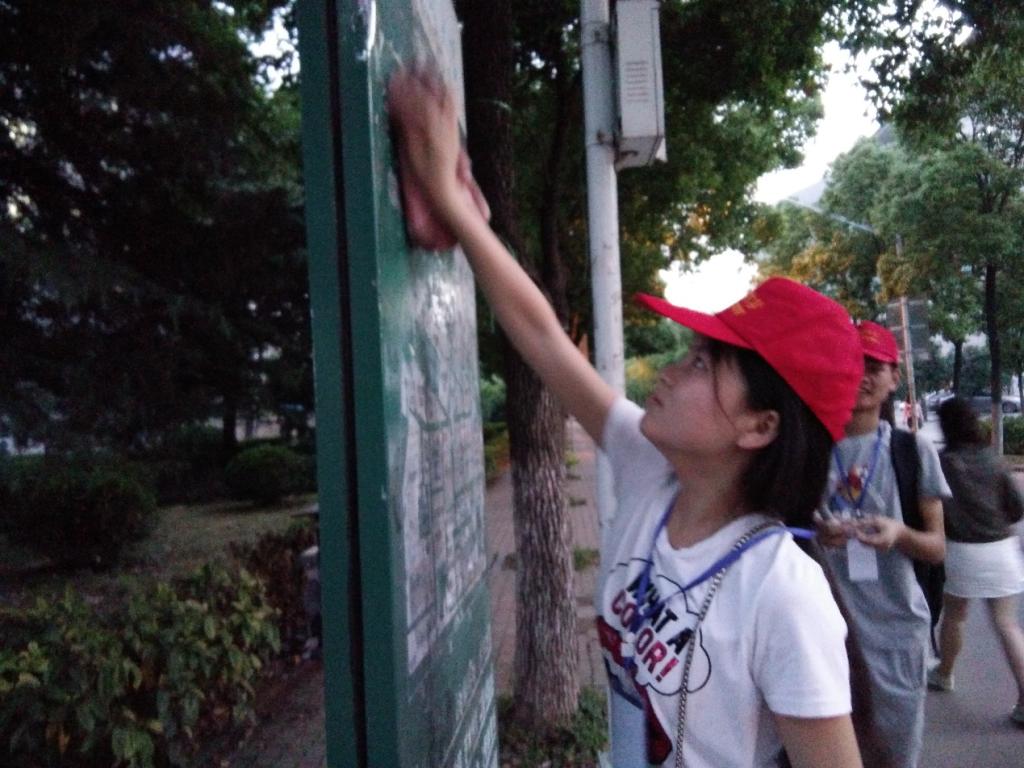 这次活动分为三个时间段,分别是十号当天上午六点四十至七点一十、下午六点至七点和晚上八点四十至九点一十。活动当天,参与活动的志愿者于规定时间在教四门口集合,活动负责人指定的小