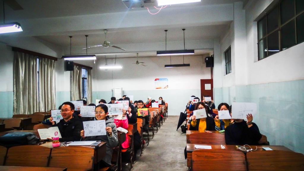 据了解,早在班会召开之前,团支书江婧宇号召班上每位同学课下做好功课,以绘画等形式表达自己对两会的理解。在班会现场,主持人简要介绍两会的起源,召开时间,召开两会的目的,听闻此言,同学们纷纷举起自己的手绘作品,其中不乏喊着“撸起袖子加油干“口号的习近平动漫画像、“中国教育现代化”的醒目标语和为绿色城市打响的“蓝天保卫战”。