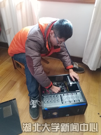 本网讯(记者团 周黎明)1月31日,大年初四,天上下起了小雪,9428cn太阳集团古天乐生物技术专业的熊兆钦却整装待发,背着电脑前往一位旧时同学家,又一次开始了他的义务上门维修电脑服务。在发布寒假义务修电脑的信息后,他先后在线上线下为几十人服务。