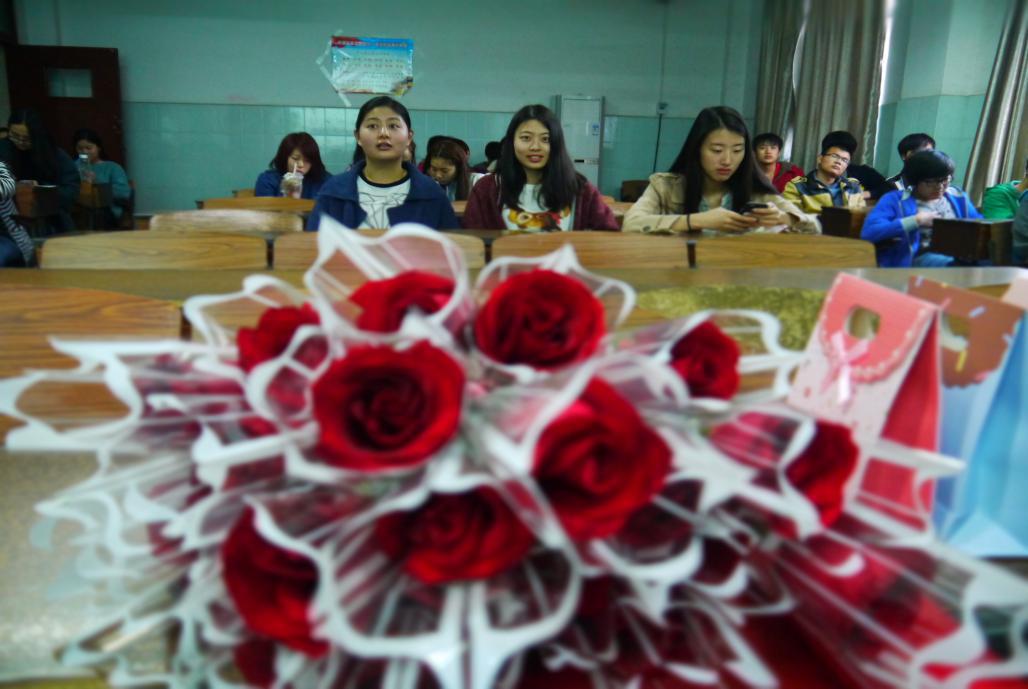 播完短片,主题活动正式进入高潮,班长作为主持人组织同学们玩起猜字游戏,欢乐和谐的氛围充分带动了大家的积极性,同学们思维敏捷,迅速抢答,以绝对的优势赢得了精致的小礼品,男同学还纷纷将自己的礼品转赠给自己感激的女生,彰显了这个集体深深的凝聚力。活动进行期间,组织委员怀抱一大束秘密准备的红玫瑰进入教室,引起全场尖叫连连,班长介绍说为了在女生节送给女同学们一个意外惊喜,此次活动是绝对保密的,看到现场同学们惊奇兴奋的反应,他表示这一切都是值得的。各位男班委将玫瑰亲手送给每位女同学,并伴随一句“女生节快乐”的真情问候。各位女同学洋溢着甜蜜的笑容接过玫瑰,轻嗅着玫瑰的芳香,那一低头的温柔瞬间,赛过玫瑰的娇艳欲滴。有同学当即表示,三年了发现生工班男生原来有如此浪漫的一面。