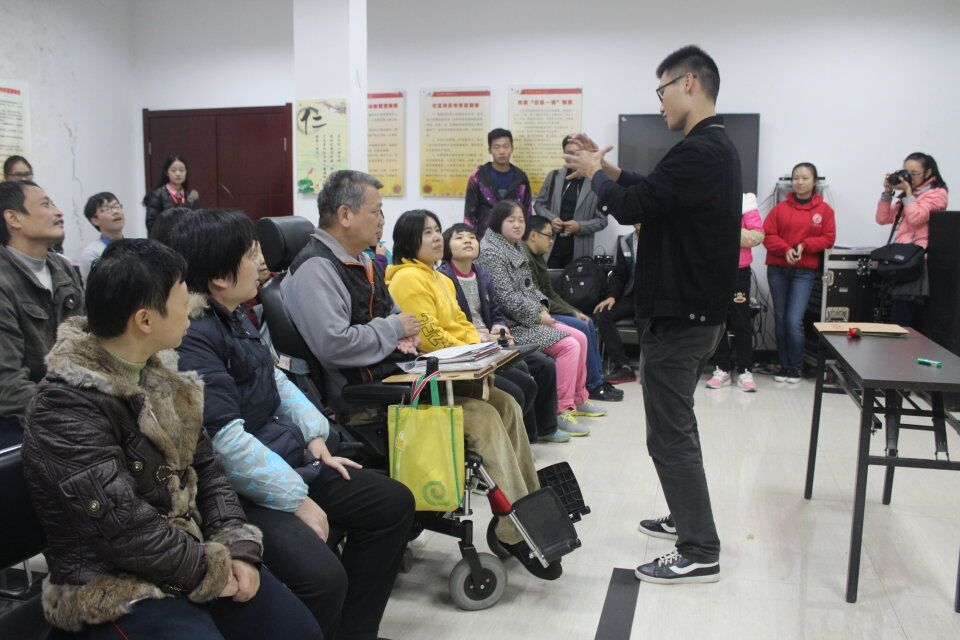11月11号,9428cn太阳集团古天乐方俊明残疾志愿服务队携手生科院志协在内的各个院的志愿者们和生科院魔术协会的成员们一起来到了徐家棚街阳光家园,开展了2015“助梦飞翔,你我同行”冬季趣味运动会。